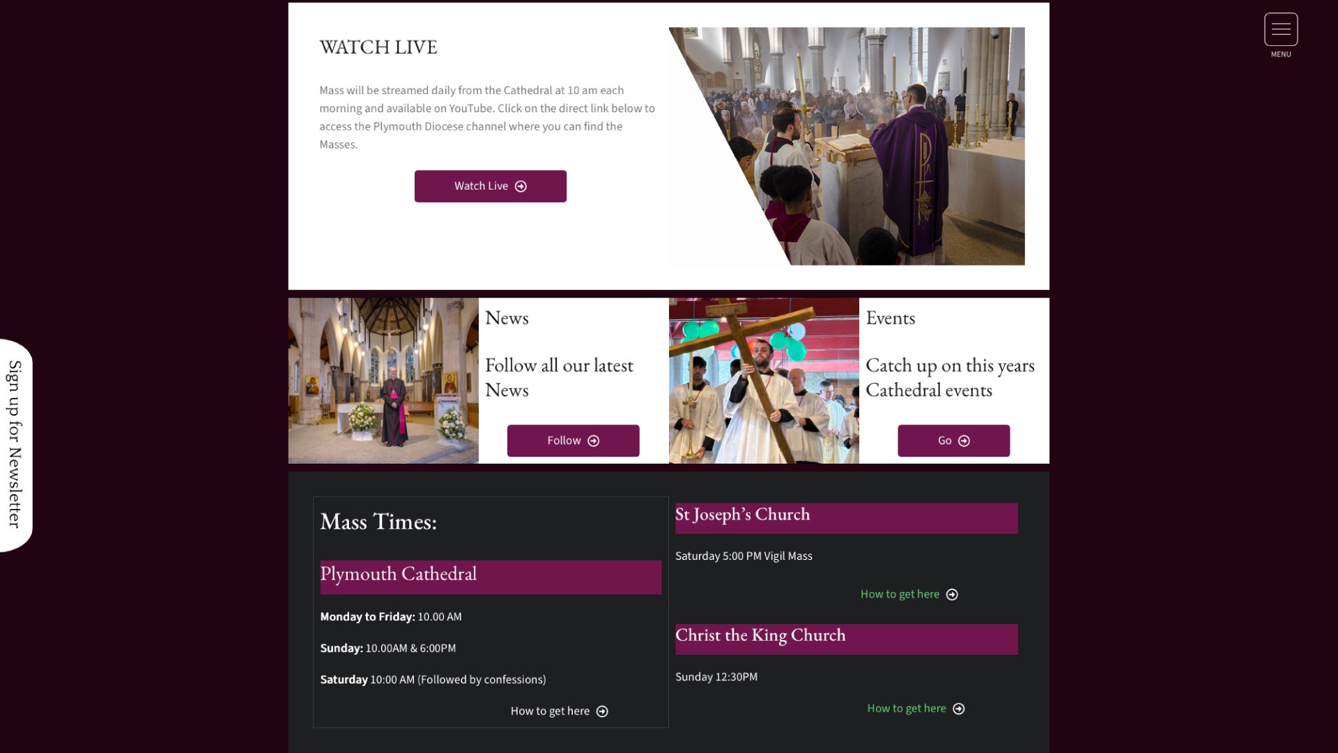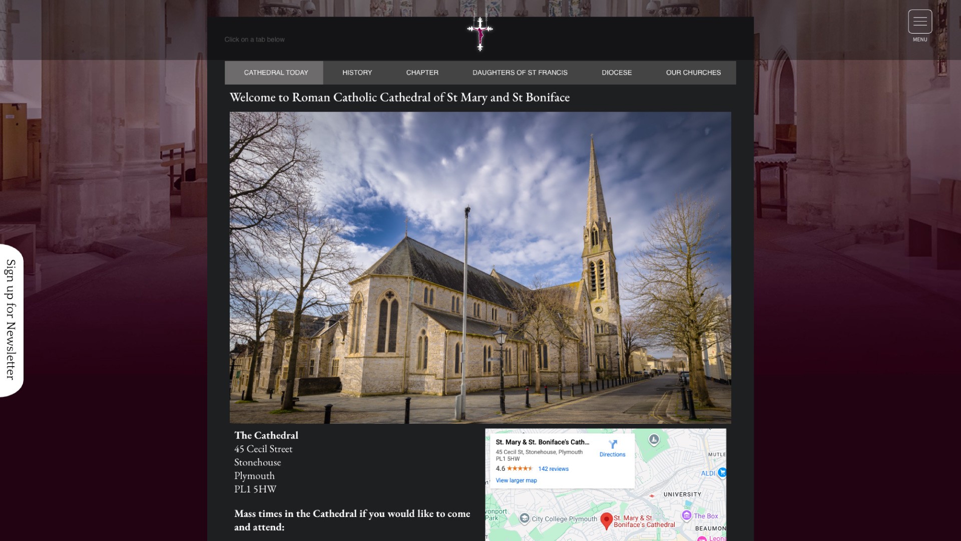 We designed and built a website the cathedral could manage itself. Visitors find Mass times, live-streamed services and information on parishes across the diocese. Staff can update news and events directly, and a newsletter keeps the congregation informed.